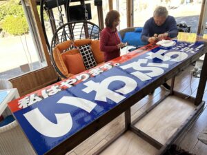 発注していた選挙事務所看板のシートが来ました! 国道から見えるように「ど〜ん」と掲示します。 3m50cm✖︎90cmの大物、板に貼るのも一苦労ですが、頑張ります。