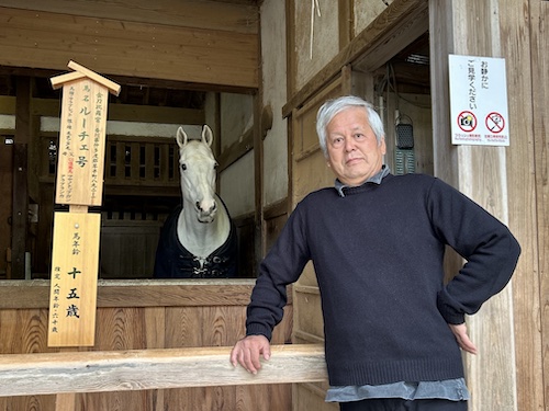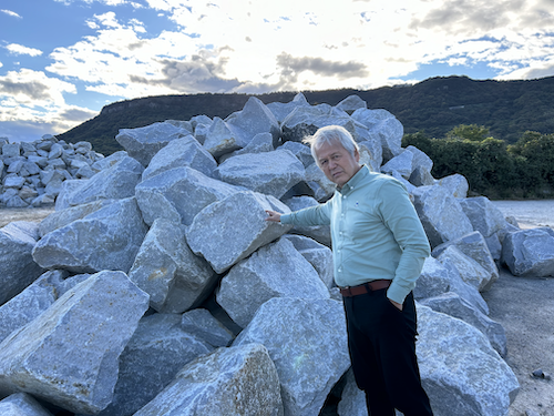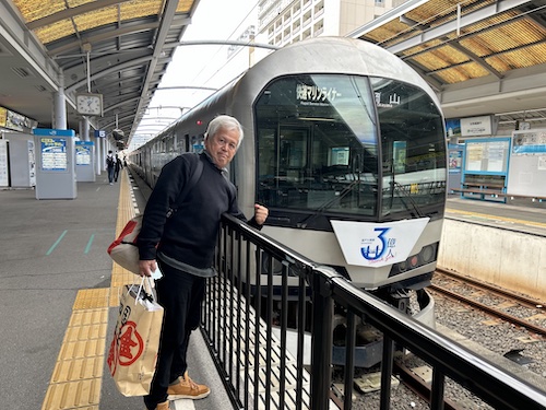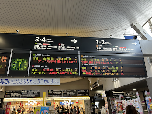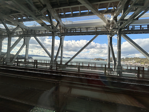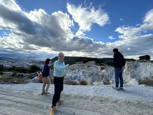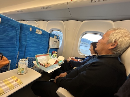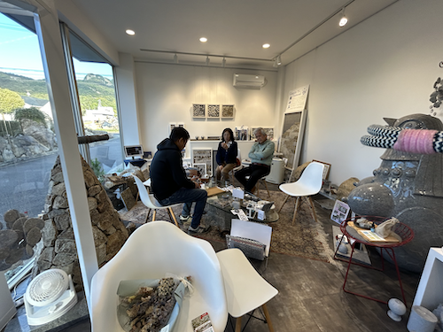 岡山到着 あまり時間がないので、急いでお弁当だけ買って乗り換えます  石の山 今回の視察は、この石の山を何かにできないかという気持ちからです  記念撮影 何かやっていこうよ!よろしくお願いしまーす  石の作品 石屋さんの奥さんが色々仕掛けているようです